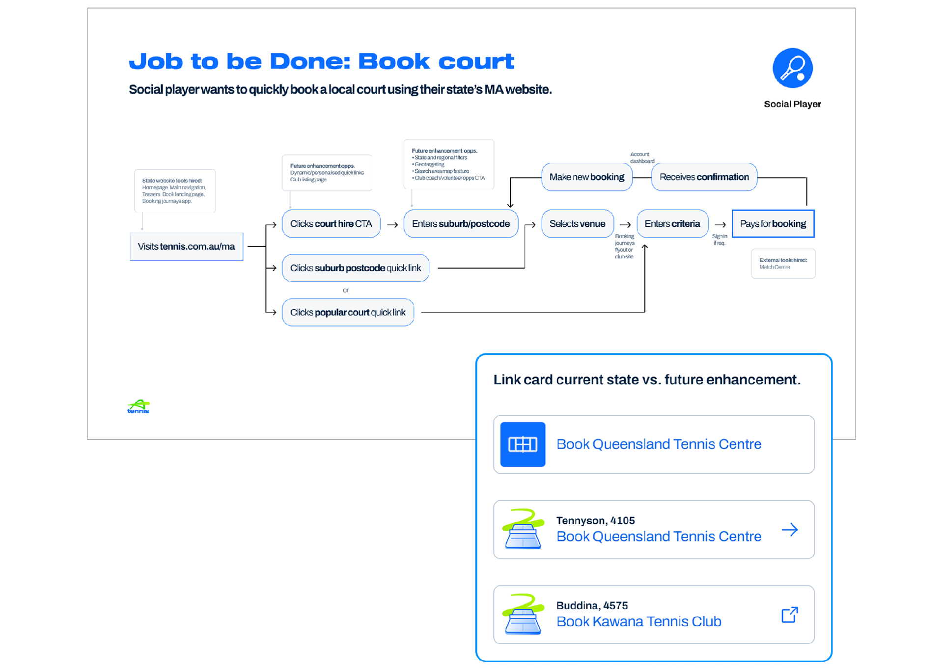 Tennis Australia’s digital presence had grown organically across many teams, tools and platforms. This created fragmented journeys across core products (search, booking, identity, events and more), with inconsistent structures and broken paths.